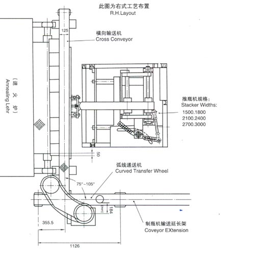 該機(jī)組是我廠在1988年消化吸收西德派尼康姆公司的技術(shù)制造的,具有國(guó)際九十年代先進(jìn)水平,可與QD4A、QD6A、QD6C、QD8A、QD8D等單滴料制瓶機(jī)和六組 、八組、十組、十二組、雙滴料制瓶機(jī)配套使用;與供料機(jī)、制瓶機(jī)保持嚴(yán)格的同步運(yùn)行,將玻璃制品連續(xù),等距離地自動(dòng)排列,避免碰撞,倒伏,磨擦現(xiàn)象,有效地提高玻璃制品的合格率,并保證其退火質(zhì)量,為冷端噴涂提供了良好的條件,該機(jī)組適用于任何形式任何規(guī)格的退火爐,尤其適用于電加熱的退火爐。